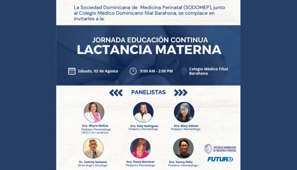 Con motivo de la Semana Mundial de la Lactancia Materna, la Sociedad Dominicana de Medicina Perinatal (SODOMEP) da inicio a una serie de actividades formativas en todo el país, reafirmando su compromiso con la promoción, protección y apoyo a la lactancia materna como pilar esencial de la salud perinatal y neonatal.